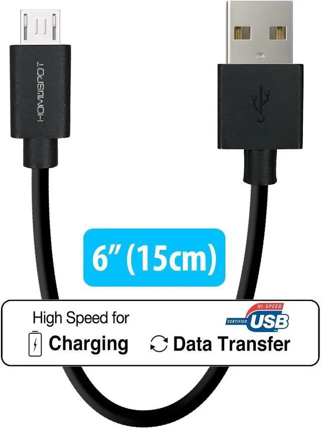 MICRO USB CABLE SHORT LENGTH - Short 6-inch length cable made for portability, easy to carry, flexible and tangle free, ideal for portable charger, charging hub, car charger or where space is at a minimum.