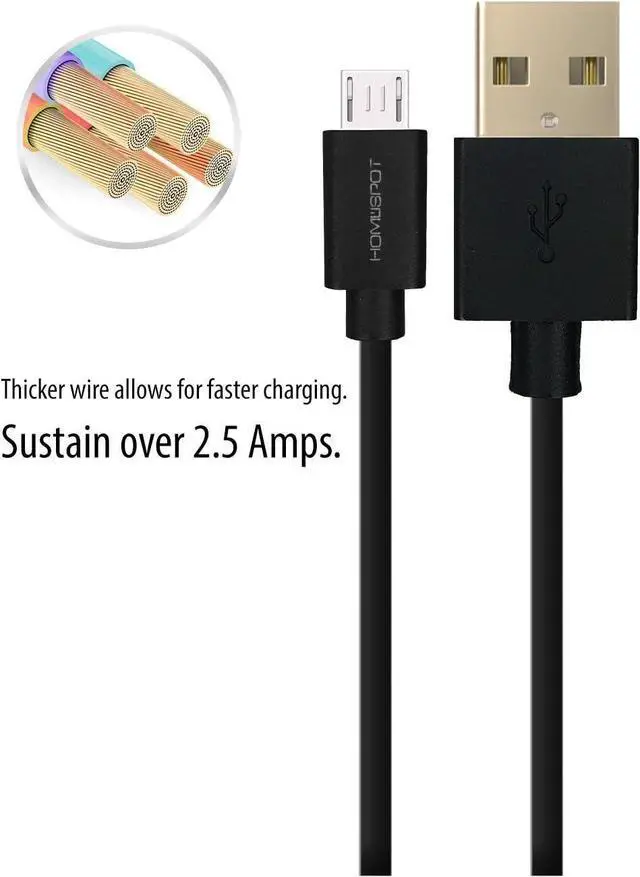 QUICK CHARGING / HI-SPEED USB 2.0 DATA SYNC - Custom 20AWG thick gauge wire, support charging current up to 2.5A for Quick Charge 2.0 enable devices; Charge 50% faster than than most standard cables and 480Mbps data transfer via backwards compatible USB 2.0.