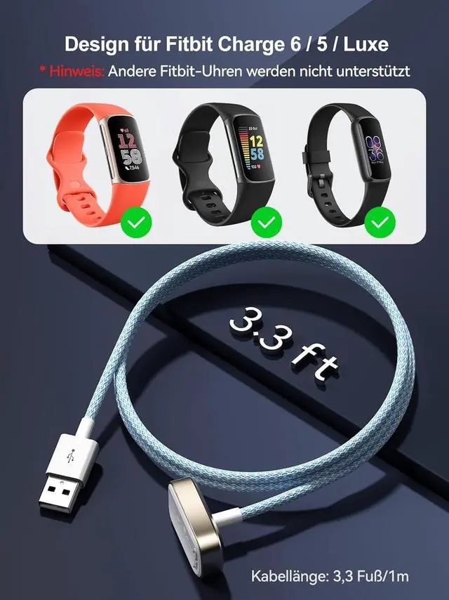 Compatible Models The charger cable specially designed for Fitbit Charge 6/Charge 5/Luxe.