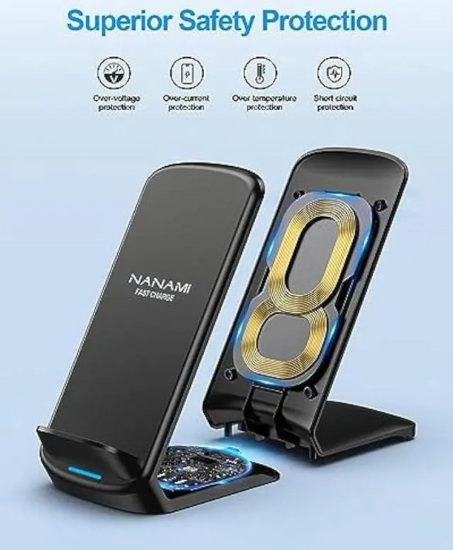 [Safe & Reliable] Features internal safeguards against overcharge, overcurrent, overvoltage, and overheat, we ensure ultimate safety for your smartphone, anti-slip bottom silicone rim and raised support give extra stability for any desk surface.