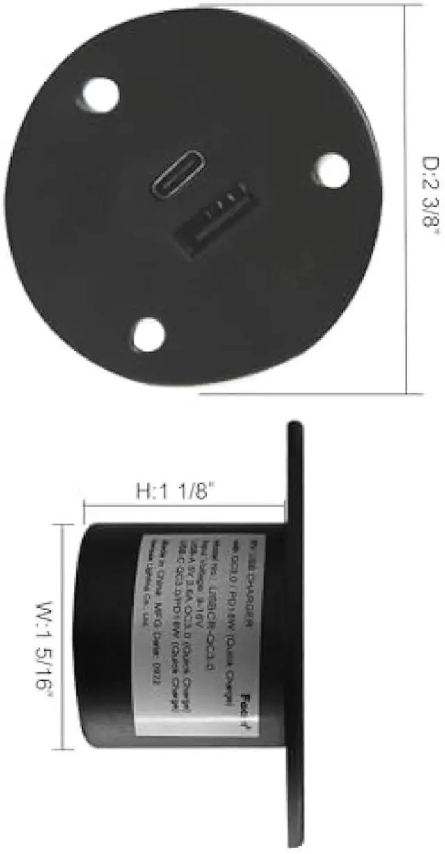 Recommend cut size: Dia 1-3/8'' x H 1-1/4''. Recessed mounting design for fix place installation. You can add this USB charger to any place that you want!
