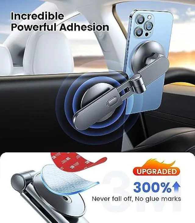 [Strongest Adhesion & Never Drop] Tesla car mount adopt genuine authorized high-quality 3M adhesive, which is super sticky and long-lasting. So even in extreme environments from -40°F to 194°F, this tesla car holder will not deform or fall off. What's even more amazing is that the 3M adhesive does not leave any glue when it is removed