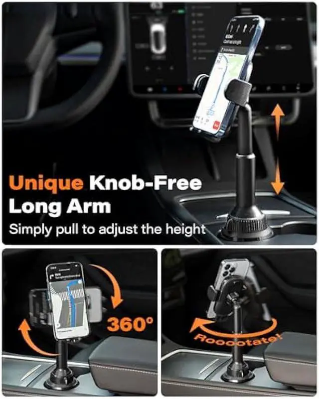 FLEXIBLE ADJUSTMENT FOR OPTIMAL VIEWING: Experience total comfort! The APPS2Car Cup Phone Mount features a long, telescoping neck that adjusts from 8.5 to 11 inches with a single hand. Rotate the head 360° to find the ideal viewing angleperfect for navigation while ensuring driving safety!