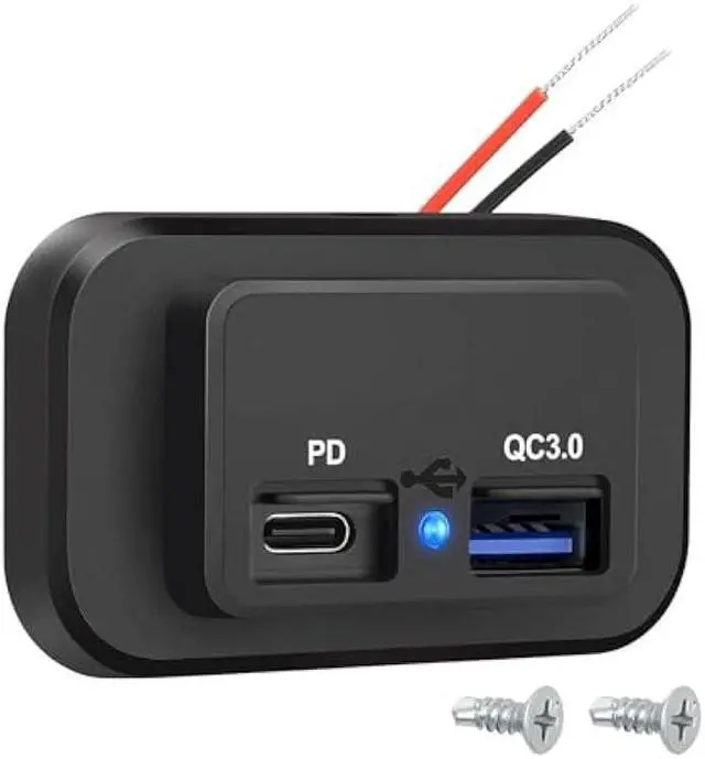 Surface Mounting: The rv usb c outlet 12v wall mount can be mounted on a plane, just a small hole to plug the wire, with the black line attached to the negative and the red line to the positive. The blue light is always on when powered on and is easy to find in the dark