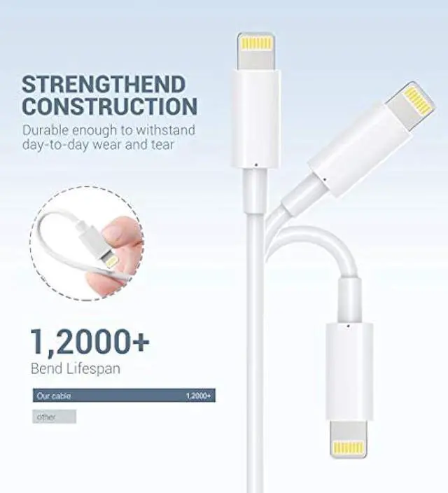 DURABLE DESIGN: With the help of PVC insulation and C89 precision welded connectors, the Novtech USB iPhone charger cable is more durable, stronger, and softer than normal others, without tangling. Lasts 12× longer than other cables and is proven to withstand over 12, 000 95-degree bends in strict laboratory tests. Its seamless laser-welded connector can even withstand 15kg exterior force without breaking off. Fully meet daily connection needs and long-term use does not fade