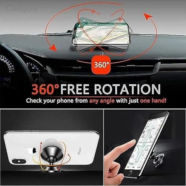 360 ° Rotation: This phone mount for car can rotate 360 degrees, you can rotate it and adjust the angle of the phone holder to provide the best viewing angle. The phone can be placed and taken out with one hand, and the phone menu can be easily operated. Our magnetic car holder is elegant and small, so you can share the car holder with your friends, family.