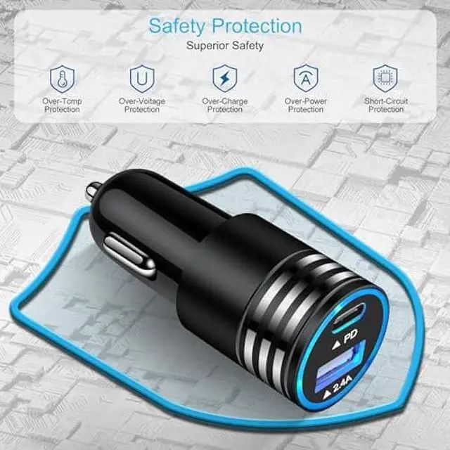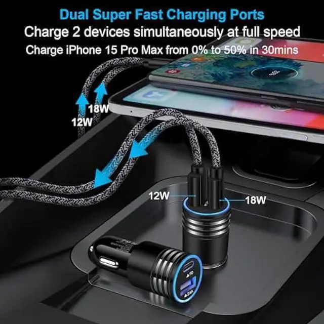 Simultaneously Fast Charge On The Road: Super fast usb c car charger with dual PD 3.0 port fast charging, with total output up to 60W (30W output each port), dual ports for samsung galaxy A14 5G fast car charger adapter can fast charge two devices simultaneously. Provides a much faster charging speed for your
