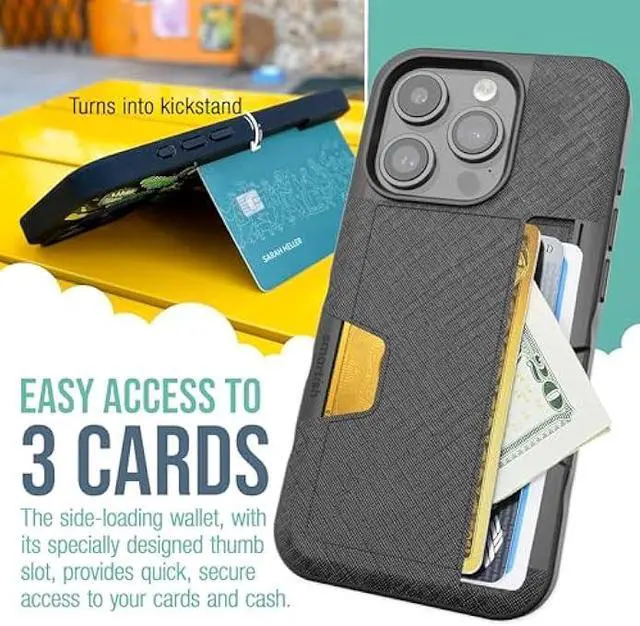 - So your money wont jiggle jiggle - This iPhone 15 case with card holder holds your cards and cash securely in place, so you don't lose them. This patented design holds 1 card securely and up to 3 cards plus cash. Wallet Slayer Vol. 1 is designed for privacy so your cards stay hidden and covered while in public. No more worrying about having to grab your wallet, everything you need is in one place. Wallet Slayer Vol. 1 allows you to travel light.