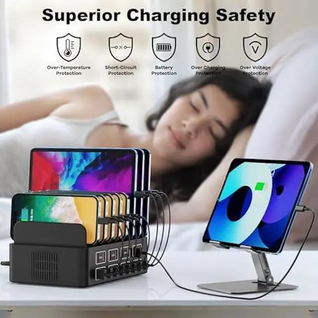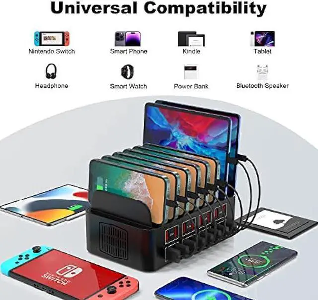 Universal CompatibilityThe multiple USB charging station is compatible with your iPhone and Android phones, tablets, earphone, kindles, and other consumer electronics. Can be used at the home, office, school, restaurant, and hotels.