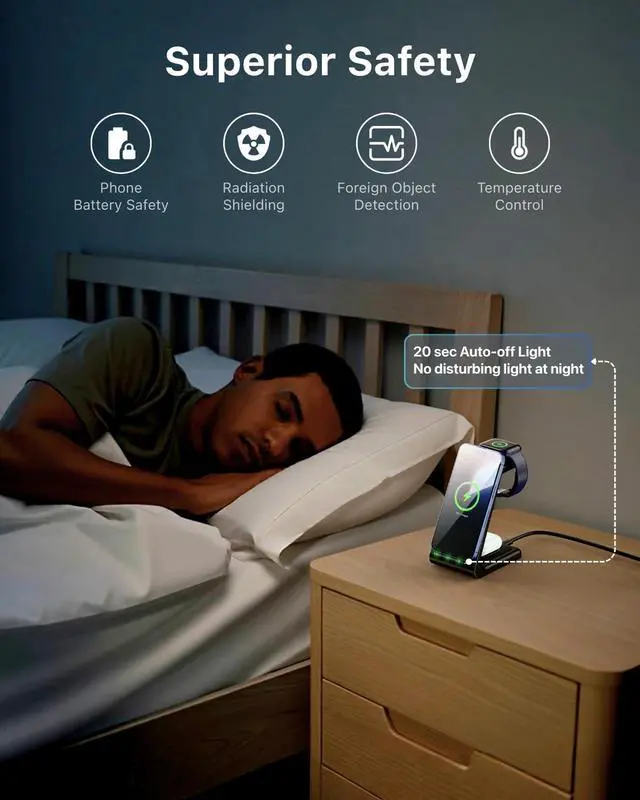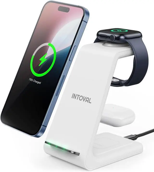 Upgraded 3-in-1 Apple Wireless ChargerPower your iPhone, Apple Watch, and AirPods all in one sleek station. With 5 years of refinement, it delivers safe, steady charging every nightpreventing overheating, overcurrent, and overvoltage for lasting peace of mind. (Note: Supports only AirPods with wireless charging cases. iPhone 12/13 mini not compatible. )