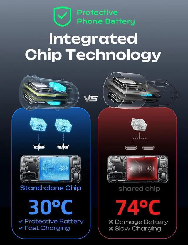 ALL METAL, WON' T HEATThe full aluminum body is scratch-resistant, durable, and attractive. The high-quality material keeps your car charger adapter always looking new. This metal USB car charger will not overheat at high temperatures, which makes it safer than plastic ones. Perfect for charging high-end phones like the iPhone 16 or Samsung Galaxy, while serving as a reliable 12V to USB adapter.
