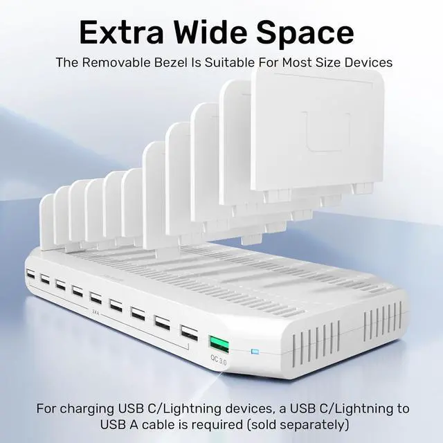 Multiple USB charging station: 10 port USB charging station charging stations can charge multiple devices including iPhones, iPad, watches Android, tablets airpods, and Kindles solution. is perfect for families, schools, offices, and other high-traffic areas where multiple devices need to be charged simultaneously. (Charging Cable NOT included)