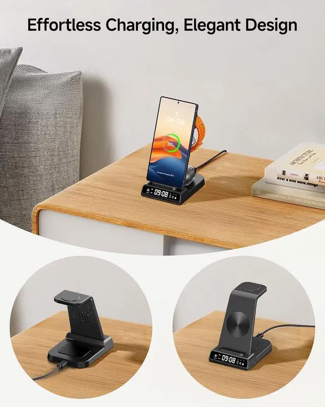 Adjustable Digital Clock: Equipped with a super cool adjustable digital clock, it makes it easier for you to check the time. The brightness of the charging station' s digital clock is adjustable. If you find it too bright at night, you can turn off the time display on the wireless charging station to avoid disturbing your sleep (Note: No alarm clock function, only digital clock design. )