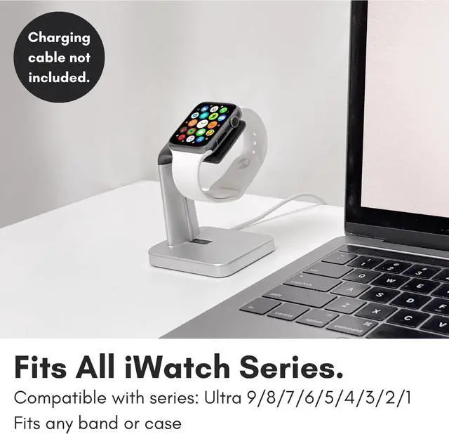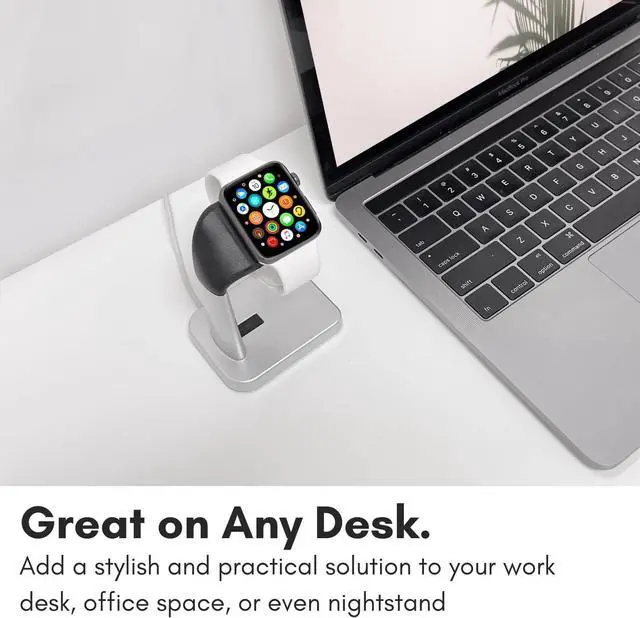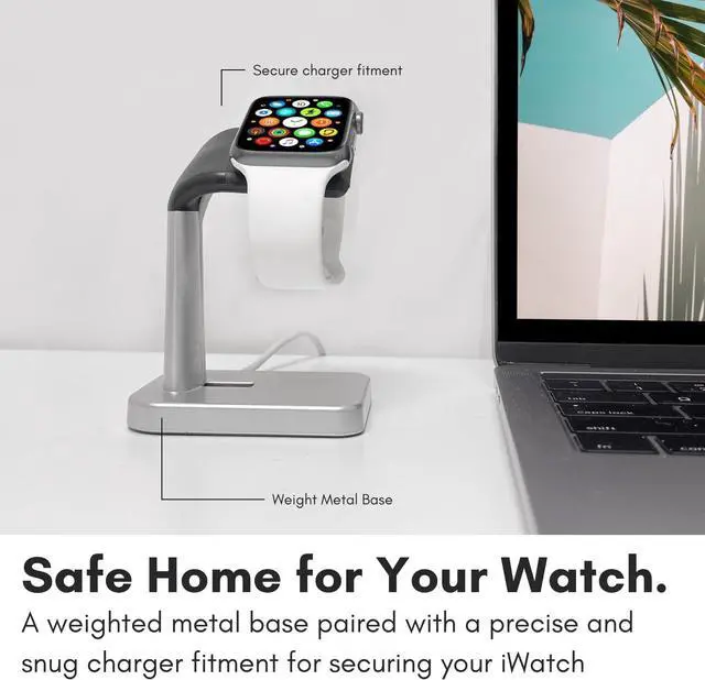 Secure Weighted Base / Protects from Spills & Scratches: With anti-slip grips and a weighted metal base the iwatch charger stand keeps your smartwatch snug and secure.