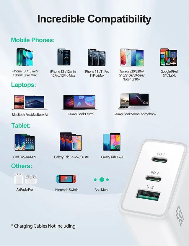WIDE COMPATIBILITY: Compatible with iPhone 16 Pro Max/16 Plus/16 Pro/16/15/14/13 Macbook Pro MagSafe iPad Pro Galaxy S24 / S23 / S22 / S21 / Note 20 / Note 20 Ultra Pixel 9 / 8 Mete 60 Switch and more electronic devices (USB-C