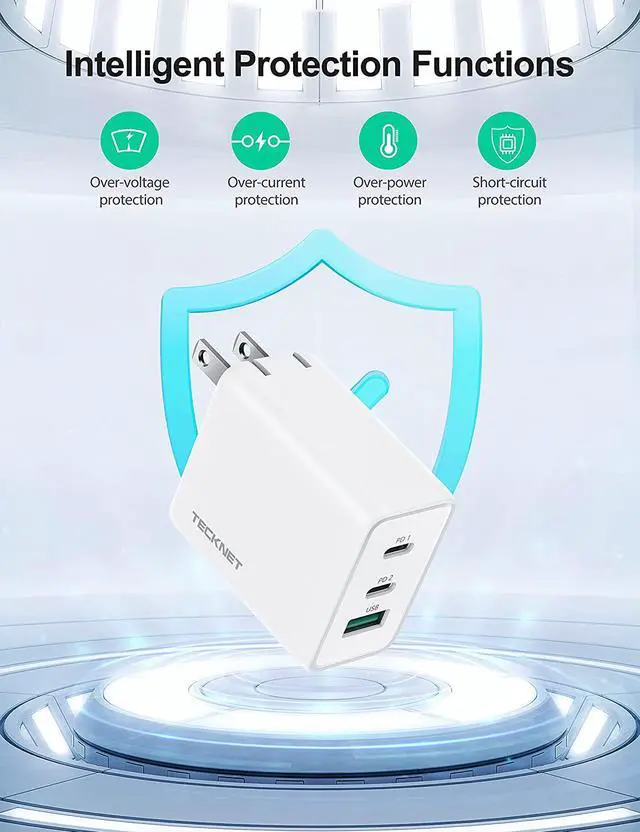 LATEST GAN CHIP TECHNOLOGY: GaN technology not only reduces the size and weight of the charger but also generates less heat reduces power consumption effectively and improves charging efficiency greatly makes charging safer and more convenientSAFE