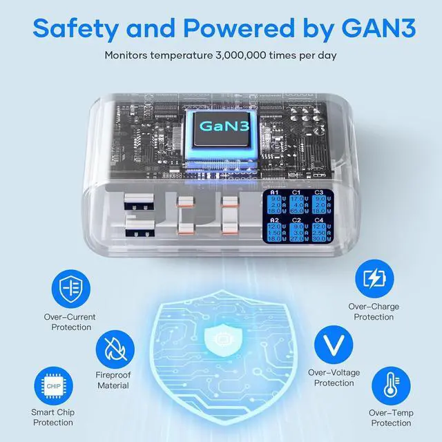 Safety: Made with Galium Nitride (GaN) technology to increase charging efficiency in an ultra-compact design the charger get faster power in a smaller charger. The fast charger USB C is equipped with a comprehensive safety system including fire resistance overload protection short-circuit protection and more providing a secure and reliable charging experienceWhat