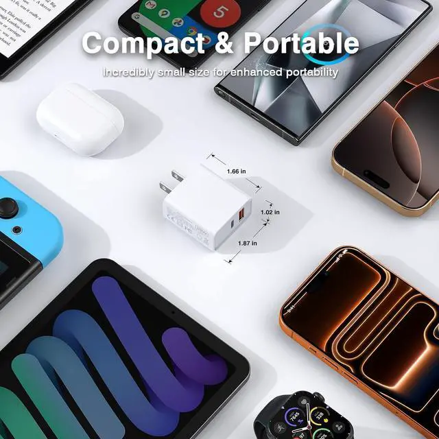 Compatation: Designed for iPhone 17/16/15/14/13/12/11 Pro/ Pro Max. The USB charging adapter is compatible with iPhone iPad iPod smartphone MP3 / MP4 players play equipment GPS devices PC tablet Google Nexus Tablet Galaxy Tab and other digital devices compatibleCompact