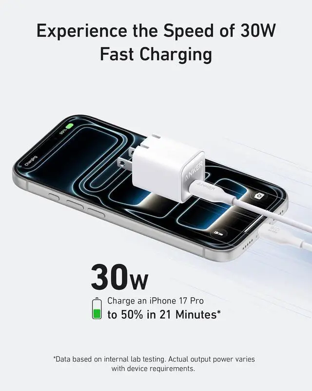Fast and Efficient Charging: With 30W output this USB C charger provides full-speed charging for iPhone Pro and Pro Max charges iPad Air (5th Generation) to 50% in just 45 minutes and supports Super Fast Charging (25W) for a seamless charging experience.