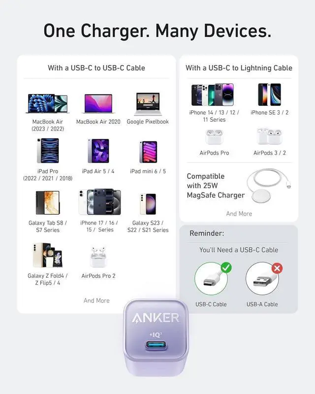 Comprehensive Package: The 511 Charger (Nano 3 30W) comes with a welcome guide a worry-free 24-month warranty and friendly customer service (cable not included) making it a reliable and convenient choice for all your USB C charging needs.
