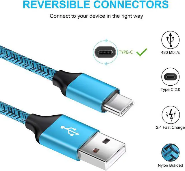 Fast Charge & Data Transfer: Our USB Type C Cord support Qualcomm QC 2.0 allowing voltage is 5V the maximum output current is 2.4A mp and transfer speed up to 480Mbps. This Nylon Braided Charging Cable prevents to bending is tangle free and robust. It pasts 10000+ times bend test. It also contained 56K resistor to protect your device from high current danger and ensure safe charging.