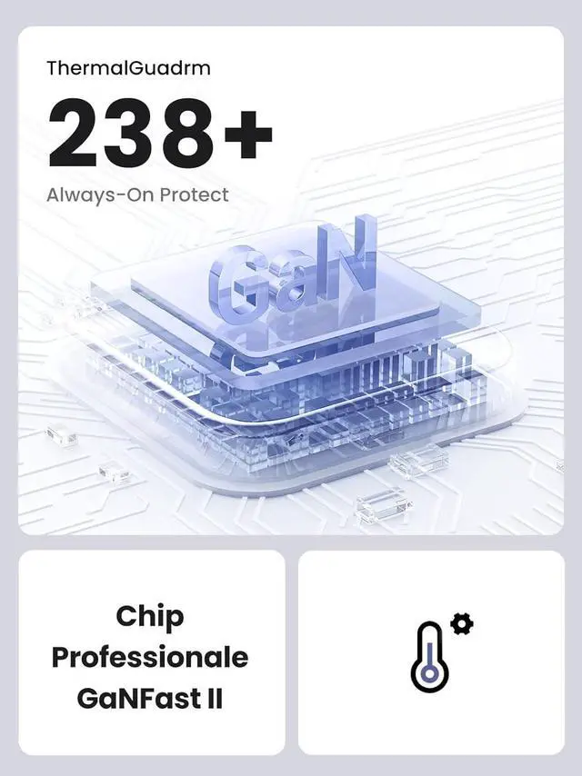 Time Protection: Scanning temperature 800 times per second with Thermal Guard technology never worry about charging safety with Ugreen Nexode Mini 30W wall chargerOne