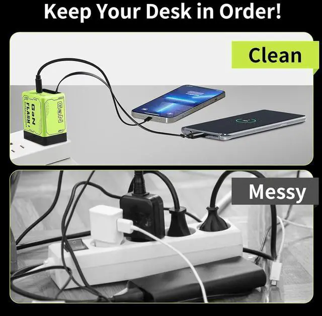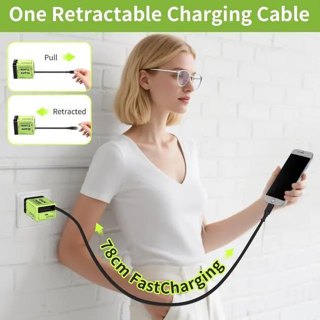 2-in-1 GaN 120W Retractable Fast ChargerOur 120W retractable wall fast charger features a built-in retractable USB-C cable and an additional USB port allowing you to charge two devices simultaneously. Perfect for families or anyone managing multiple gadgets this GaN fast charger delivers powerful efficient charging. High-Efficiency 120W GaN Charger Featuring advanced Gallium Nitride (GaN) technology this retractable charger has a high energy conversion rate of 92% ensuring faster more stable charging with less heat compared to traditional chargers. Experience lightning-fast speeds with 120 watt phone charger compatible with smartphones laptops and tabletsSmart & Safe ChargingEquipped with an intelligent chip the 120W USB-C charger automatically adjusts power to match your devices needs This retractable iPhone charger supports a maximum output of 120W and is compatible with PD QC PPS and more.