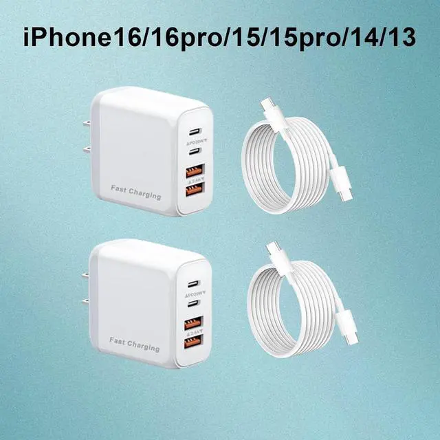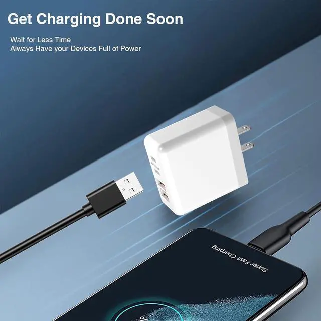 It is a great alternative to the original USB charger. Not only that this USB-C wall charger is very small and portable. You can easily carry it wherever you go. It's perfect for use at home in the office or on the goMultiple Safe ProtectionTo protect your devices from overheating overcurrent overcharging and short circuit the usb c charger block will stop automatically when the battery is full. The USB wall charger is made of ABS and PC fireproof material to ensure the safe charging of your digital devices. This 4-port wall charger intelligently detects different devices and dynamically distributes the appropriate current allowing all four ports to be used simultaneously without overloadingWhat You Will Get 2- Packs of 4-Port Rapid Charger with cable (White) If you encounter any problems while using the usb charger block please feel free to contact our professional customer service team Our team is dedicated to delivering a service that is not only professional but also friendly and approachableKey WordsUSB C Wall Fast Charger Blockfast charging blockcharging blocks usb-c fast chargingcharging brickusb c charger blockcharging blocksusbc charger blockusb charger blockusbc chargercell phone accessoriescharging blockcell phone chargerwall charger