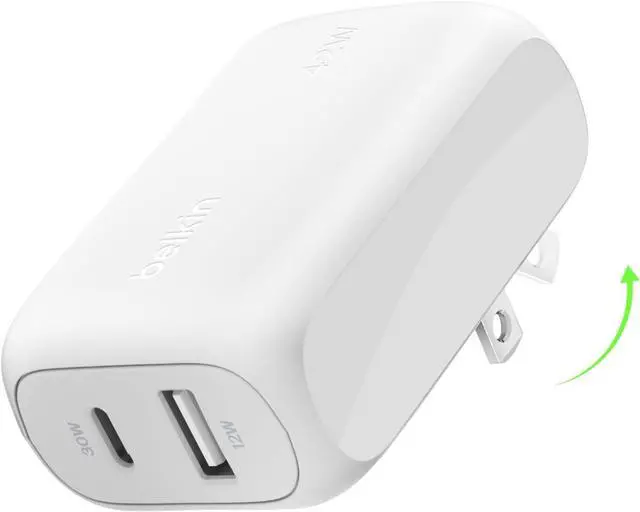 SAFE and RELIABLE: Our BoostCharge dual wall charger has gone through extensive testing to ensure a charger that charges your devices safely and reliably throughout the entire life of the product. Plus foldable prongs make it easier to travel with. SUSTAINABLY MADE W/ 2-YEAR