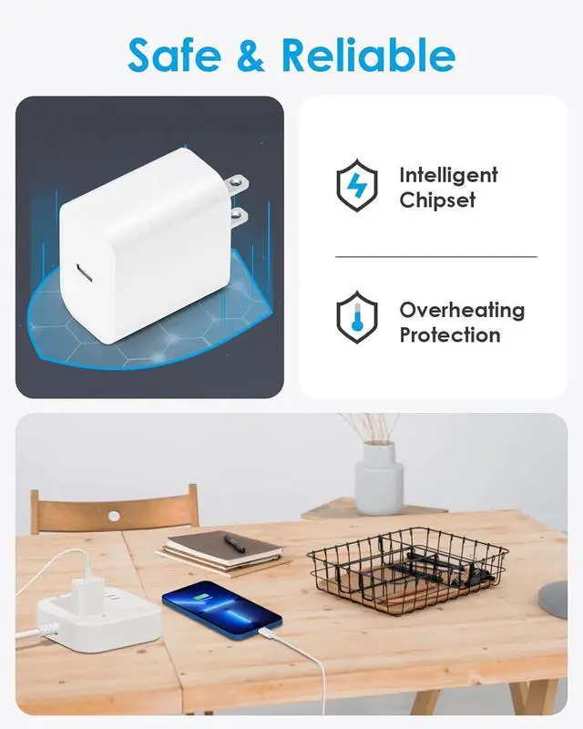 Reliable: While purchasing a 20W Phone fast charger 10 ft you may have dilemma-whether to choose 20W charger or 3rd party 20W charger. Most of the people think that 3rd party chargers may not be safe and may affect the battery life in the long terms. However it is not entirely true. 20W 10 ft Phone charger offers Multiple Safeguards Automatically. Multi-Charging Protection Keeps Your Device Safe From Over-Current Over-Voltage Over- Heating & Short-Circuiting.