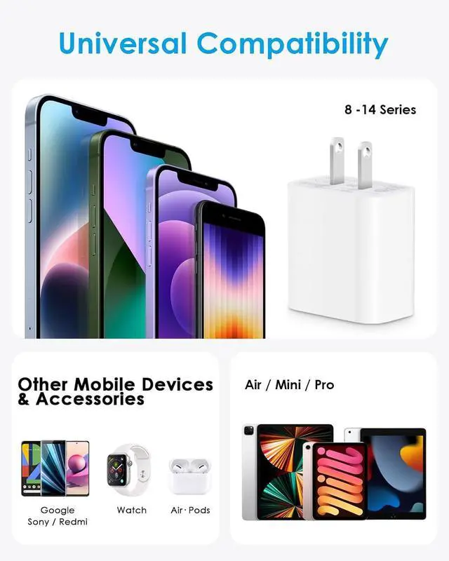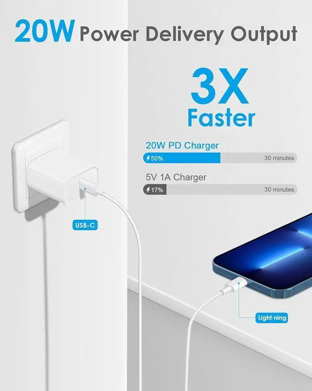 20W Fast Charger Phone: The older fast Phone charger (5W) are not compatible with new Phone models as they don't support the fast-charging technology which only works with new 20W USB C Charger. It provide 3X faster charging speed than the 5W adapter. How to choose a long fast