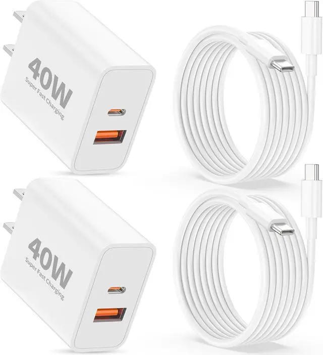 You Get: 2 x 40W Dual Port USB C Wall Charger (White) 2 x 6FT USB C to C Charging Cable (White). 18-Month Replacement and 24/7 Friendly customer service