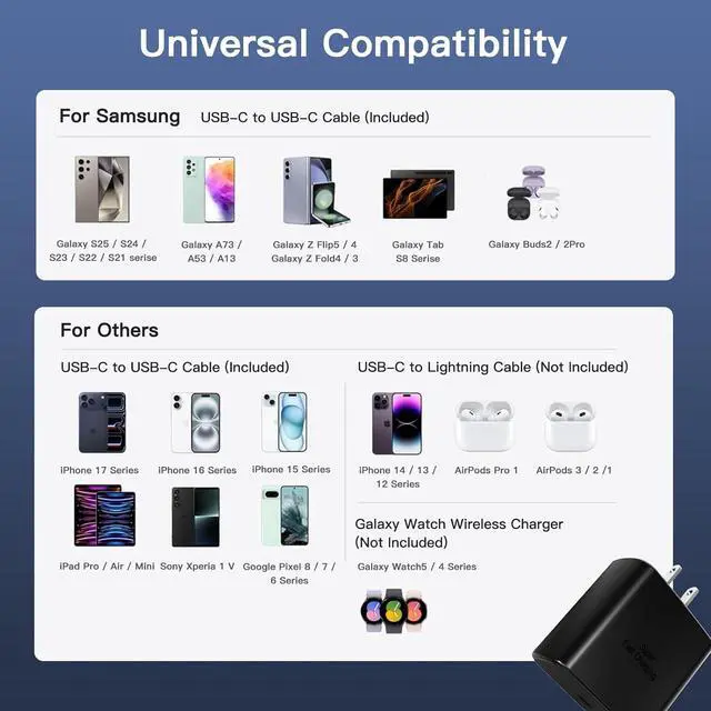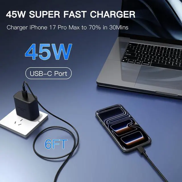 It also compatible with iPhone 17/iPhone 17 Pro/iPhone 17 Pro Max/iPhone Air/iPhone 16/iPhone 16 Plus/iPhone 16 Pro/iPhone 16 Pro Max/ iPhone 15/iPhone 15 Plus/iPhone 15 Pro/iPhone 15 Pro Max/ 2021/2020/2018 iPad Pro 12.9 /11 inch iPad Air 4 Watch AirPods and more. What You Get2pack 45 watt usbc super fast charging blocks and 2pack 6FT typec cables worry-free 24-month warranty. if you have any questions or concerns please do not hesitate to contact us.