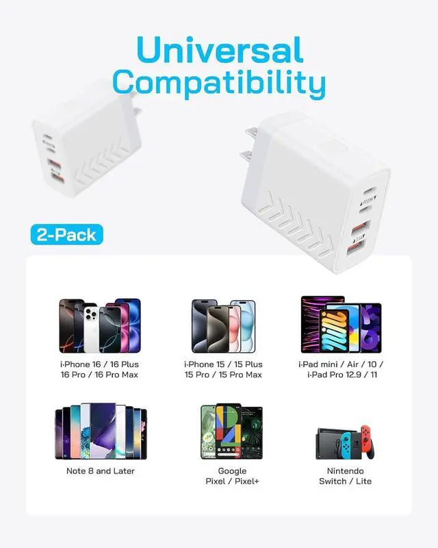 [Universal Device Compatibility] Works seamlessly with all your i Phone (17/16/15/14/13/12/11/X I Pad Air Pods) Galaxy (S25/24/S23/S22) Google (Pixel 8) and other major brand devices. Whether you need USB-C for newer gadgets or USB-A for older accessories we've got every charging need covered in one compact unit - no more Sorry incompatible charger nonsense! [UL-Certified Safety Protection] Rest easy knowing your devices are protected by UL-certified safety features including built-in smart IC chip that prevents overheating overcharging and short circuits. The premium fire-resistant ABS+PC shell provides an extra layer of protection for worry-free charging day and night.
