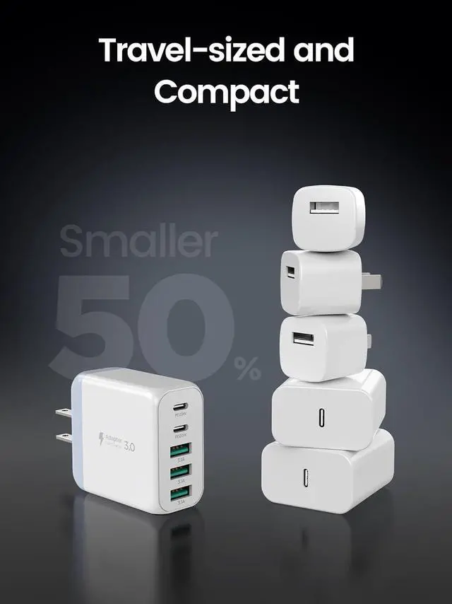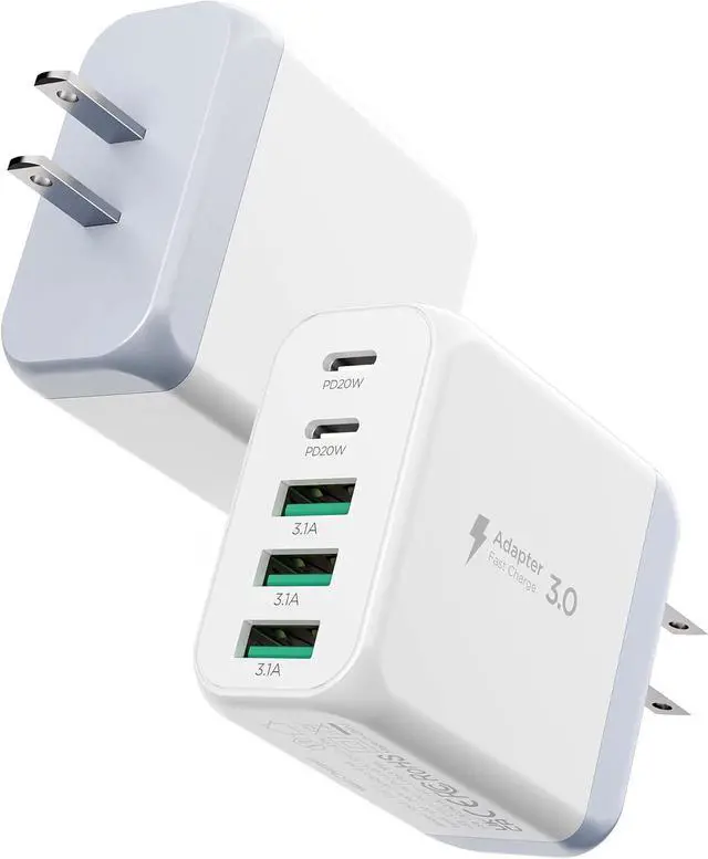 Multiport Usb C Charger: This charger brick features dual USB-C ports and three USB-A ports letting you charge your phone tablet and headphones all at once reducing wait time. It saves space by using just one wall outlet instead of five. It's the perfect replacement for your original USB charger.
