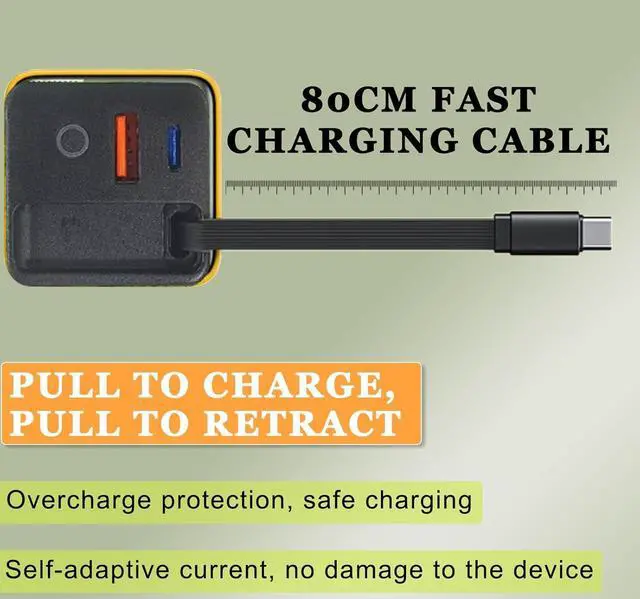 Rapid Efficiency: Designing with 1 Retractable USB C cable + 2 USB Ports support 3 device at the same time and for PD for QC for PPS ectSafety