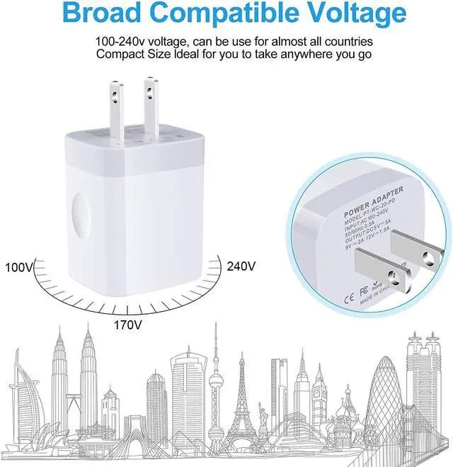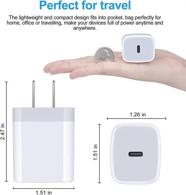 Charging Cord: The USB C Charger Brick is with PD charging cord. The USB-C connector offers a user-friendly reversible design fast Charging and transferring Up to 480 Mbps data transfer speed; power output up to 3Amp.