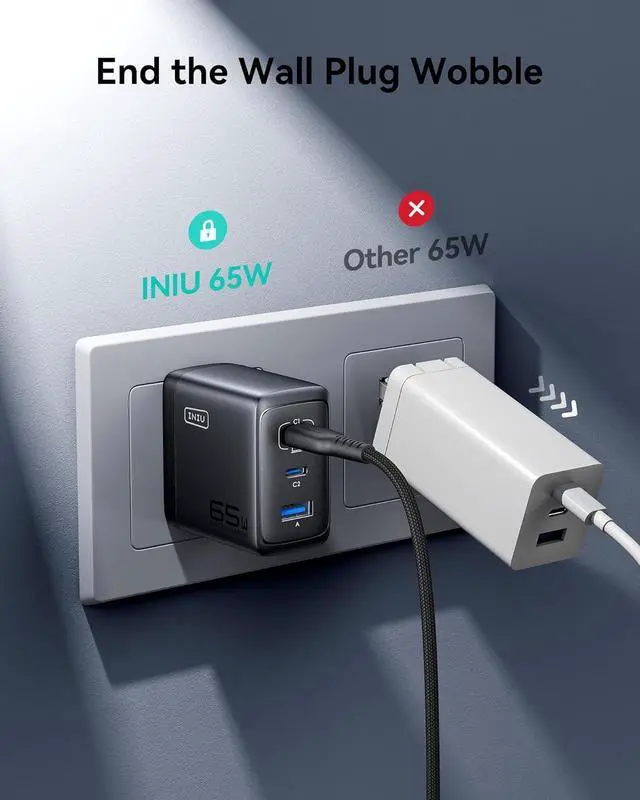 What You Get: INIU 65W Wall Charger x1 Fast Charging USB-C Cable x1 User Manual x1 Industry-Leading 3-Year INIU Care and Lifetime Technical Support.