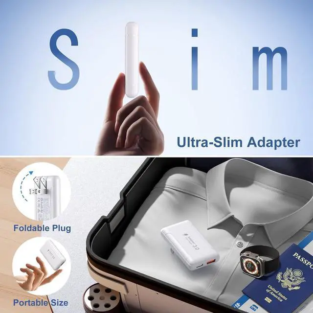 Flat Portable Phone Charger: Lightweight and ultra-slim size (only 0. 59 inches thick) is ideal for narrow place and hard-to-reach outlet that behinds furniture. Moreover foldable plug design is convenient to carry and keep especially put in your pocket or bag during business trips or vacations. 40W Dual USB Fast
