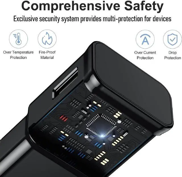 Design]: UL Certified. Multiple built-in safeguards and intelligent IC identification technology protect against short circuit over-current over-voltage over-heating and over-charging. Automatically stops charging when battery capacity is full to ensure your device safety and long lifetime. [Durable 6ft Fast Charging USB