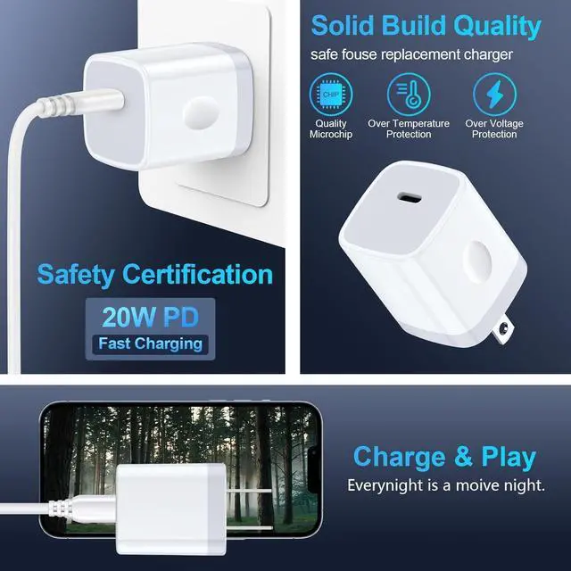 What You Get: 2Pcs 20W iPhone 15 PD Power Adapter Type C Charger Fast Charging Brick (White) If you have any questions please feel free to contact us we will reply you within 24 hours. our fan-favorite 12-month Warranty Quality Guarantee. (cable not included).