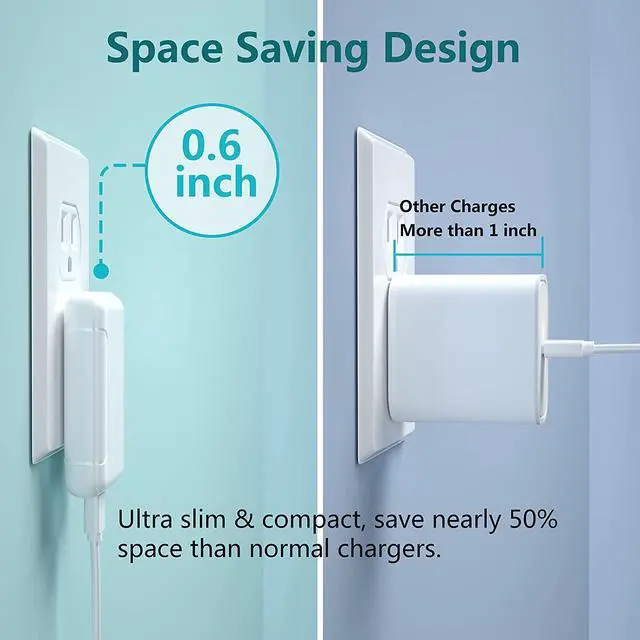 USB WALL PLUG: Costyle extra slim wall chargers are especially designed for compact space in your house! You can plug them behind your headboards nightstands side tables or any furniture. They are only about 0.6 inch thick and have foldable plug which make it more portable for worldwide travel or business.