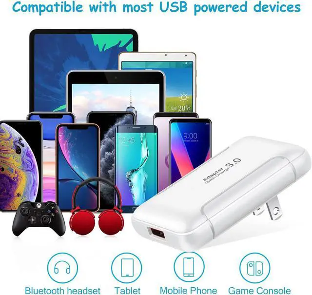 USB-powered devices: such as iOS device (iPhone 11 Pro Xs Max XR 8 7 Plus) tablet ( Tab ) wireless charger Bluetooth speaker MP3 kindle Switch cam Bluetooth headphone and more. You can leave them in house office hotel or other places.