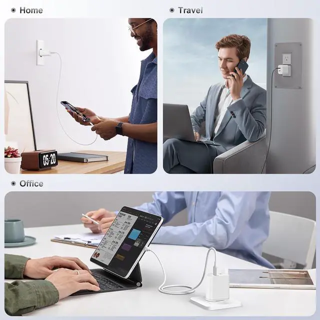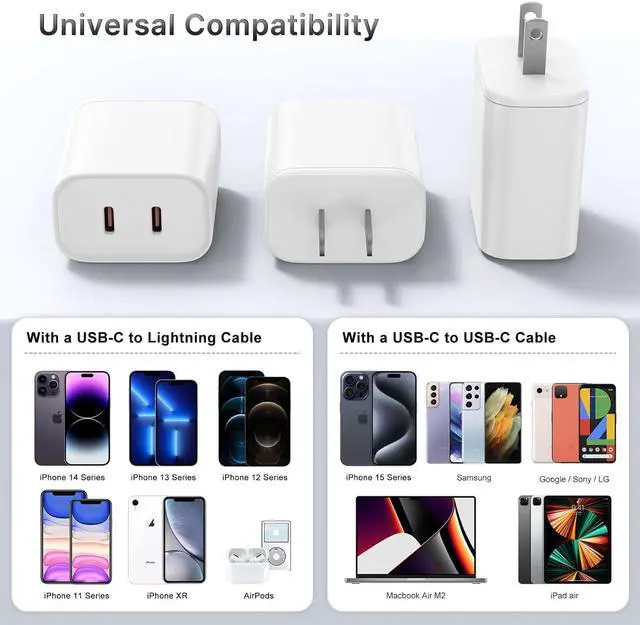 Universal Compatibility: USB-C wall plug works flawlessly with all USB-C devices and lightning devices like iPhone 16/15/14/13/12/12 Mini/12 Pro/12 Pro Max/11/11 Pro/XS Max/XS/XR/X/8 iPad Pro Galaxy S21/S21+/S20/S10 Note 20/10 tablets MacBook Air (2018) Wireless Earbuds and other USB-C tablets etc.