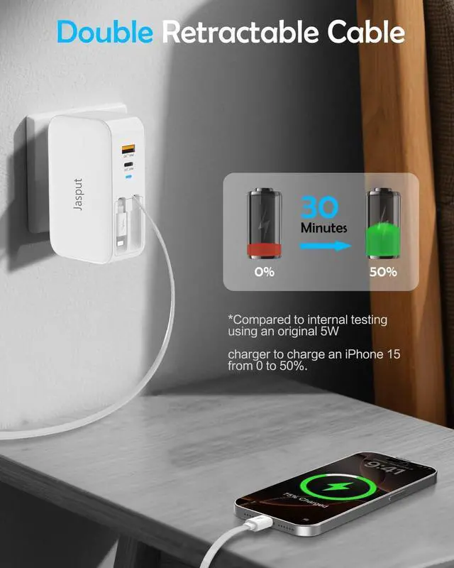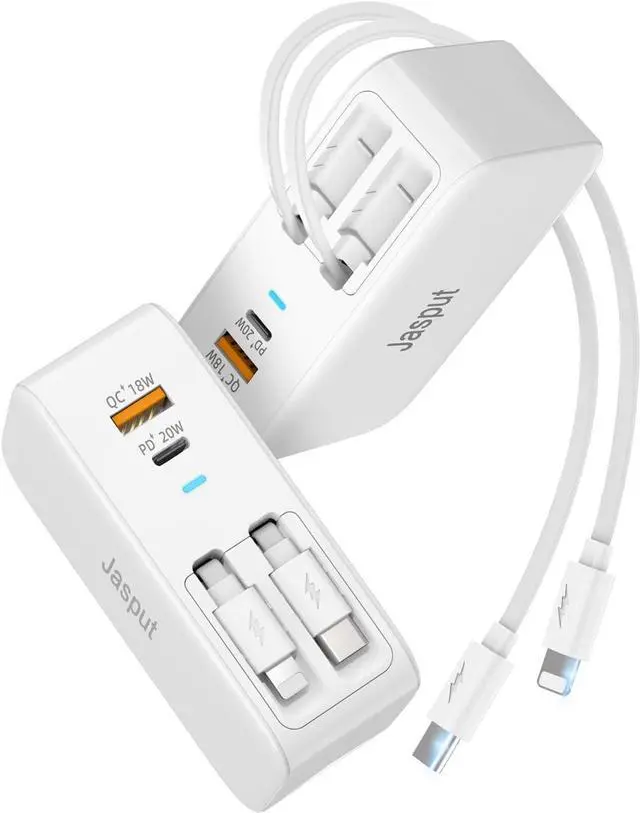 for Fast Charger Block: supports PD 20W and QC protocols to deliver rapid charging for your devices. Charge your phone up to 50% in just 30 minutesperfect for when youre short on time. Stay powered during critical moments whether you're rushing to a meeting or preparing for a day-long adventure. Retractable iphone Charger Wall Plug Weighing only 0.41 lb and small enough to fit in your pocket is a travel essential that combines functionality with portability. Slide it into your bag pocket or suitcase and take the convenience of multi-device charging with you wherever you go. Retractable Charging Cable extend up to 35.43 inch/ 2.95 ft for flexibility then smoothly retract when not in use keeping your workspace or travel bag clutter-free. Imagine a tidy desk or suitcase with no messy cords to sort through. The T11 ensures an organized and stress-free charging experience. Retractable Multi Charging Cable intelligently adjusts power output to match each device protecting against overcharging overheating and short circuits. Rest easy knowing your devices are safe whether youre charging overnight or multitasking with multiple gadgets.