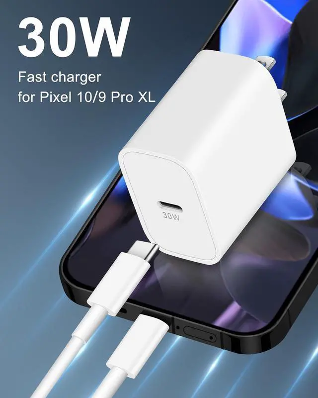 Compatibility: 30W USB C Fast wall charger for Google Pixel 10/10 Pro/10 Pro XL/10 Pro Fold/9/9 Pro/9 Pro XL/9 Pro Fold/8/8a/8 Pro/7/7a/7 Pro/6/6a/6 Pro/5/5a/4/4a 5G/4 XL/3a/3a XL Pixel Tablet Pixel Slate Pixelbook Galaxy S25/S24/S23/S22/S21/S20/Ultra Note 20/10 LG Moto Tablet Android Phones and moreSafe and