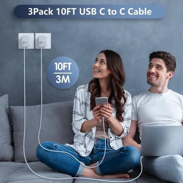 Charging Cord: Enjoy the convenience of a 10FT USB-C to C charging cable that supports PD 3.0 fast charging up to 60W and data transfer speeds of up to 480Mbps giving you flexibility to charge from any distanceWidely CompatbitibleThis powerful 45W USB-C charger is compatible with iPhone 17 /16/ 16 Plus/ 16 Pro/ 16 Pro Max/Phone 15/ 15 Plus/ 15 Pro/ 15 Pro Max/ Pad Pro 12.9 inch 11 inch Pad Air 6th/5th/4th 10.9 inch for S23/S22/S21 Ultra/Plus and more USB-C DevicesWhat You GetThe package includes 3 x USB-C Charger blocks and 3 x10FT USB-C to C fast charging cables