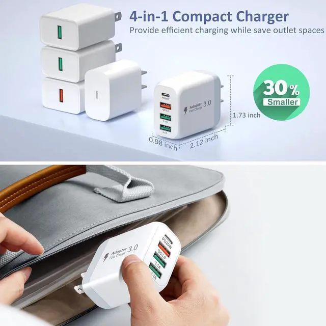 [Fast Charging Brick] Total 40W USB C power adapter with 3 USB A and USB C ports it enable you to use both the older style USB and the newest style USB-C cords to fast charge almost all your electronic devices. It is perfect for needing to plug in multiple devices while you have limited outlet space. [Multiport USB A and USB C Wall Charger] The charging block is equipped with PD 3.0 and Quick 3.0 fast charging technology single USB-C port can provide max 20W power delivery while the QC USB-A 3.0 port can provide max 18W power.