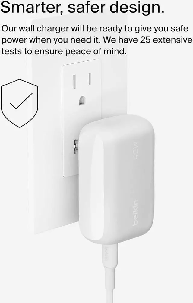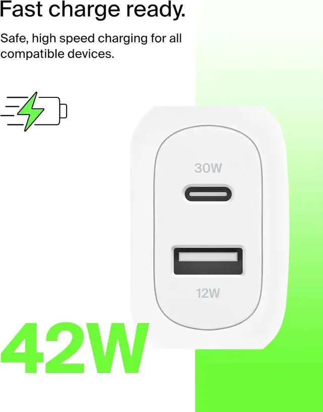 FAST CHARGING TECHNOLOGY: This 42W USB-C wall charger lets you fast charge an iPhone 16 or Galaxy S25 from 0-50% in just 24 minutes allowing you to spend less time charging and more time carrying out the tasks of your day.