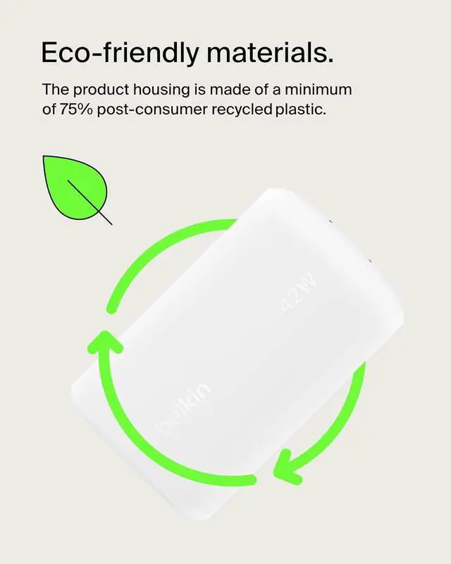 WARRANTY: This BoostCharge charger's housing is made of post-consumer recycled content while its packaging is made 100% plastic-free. Plus maintain peace of mind with a 2-year warranty and Connected Equipment Warranty.